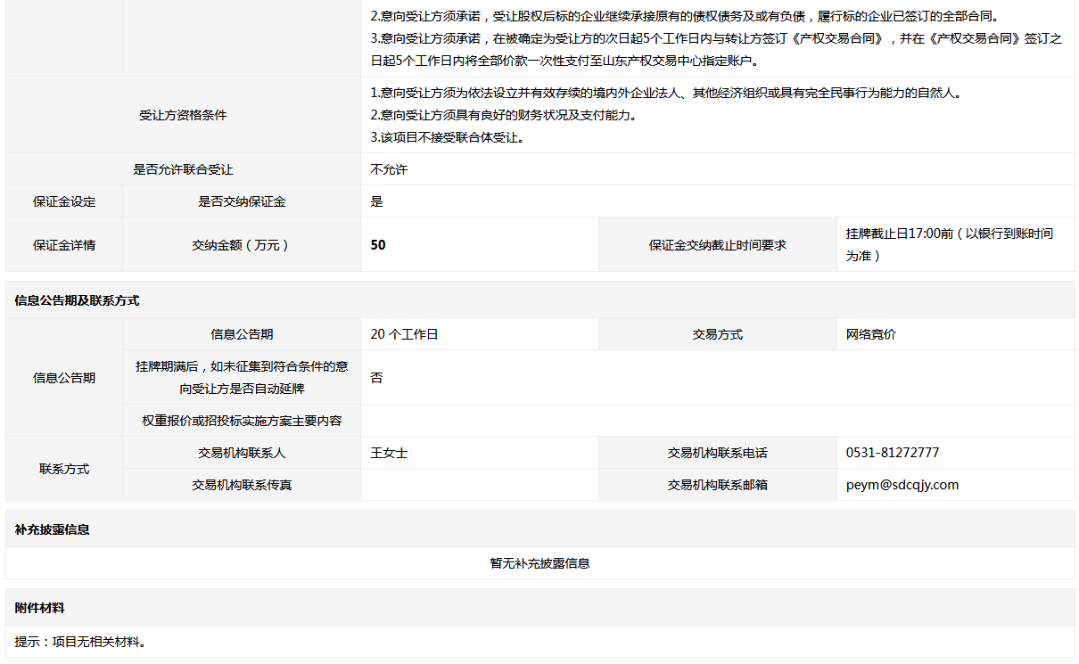 • 轉(zhuǎn)讓方: 煙臺市福山區(qū)財政局(煙臺市福山區(qū)國有資產(chǎn)監(jiān)督管理局)