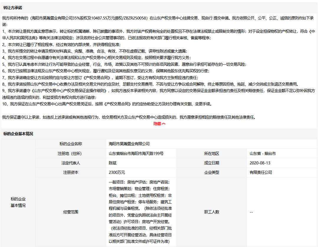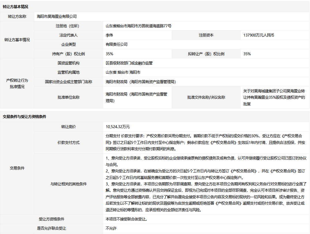• 轉(zhuǎn)讓方:海陽市昊海置業(yè)有限公司