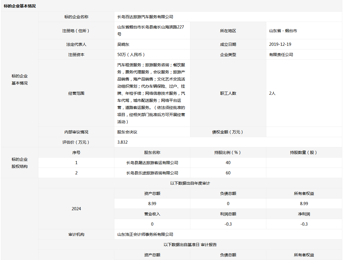 長島百達(dá)旅游汽車服務(wù)有限公司40%國有股權(quán)