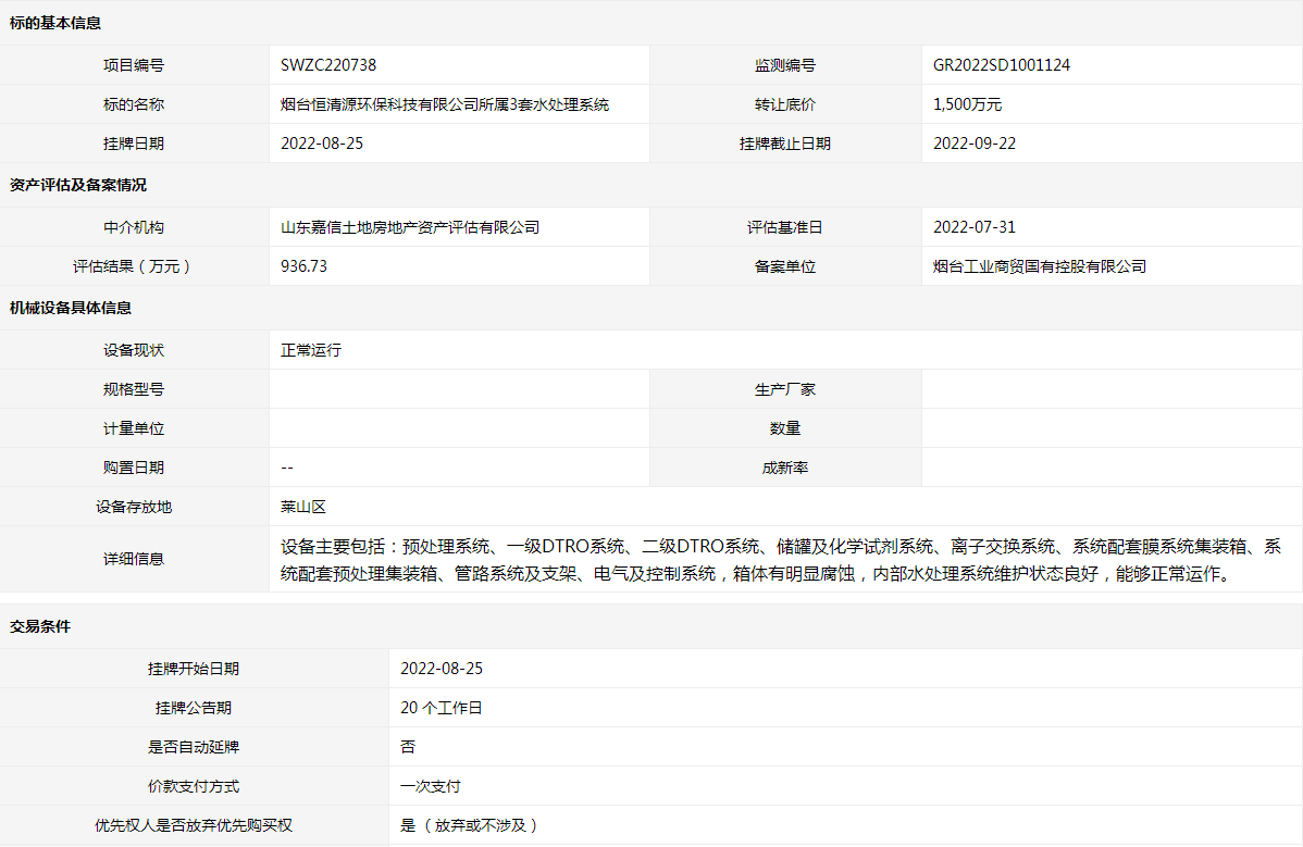 • 轉(zhuǎn)讓方:煙臺恒清源環(huán)??萍加邢薰?/li>