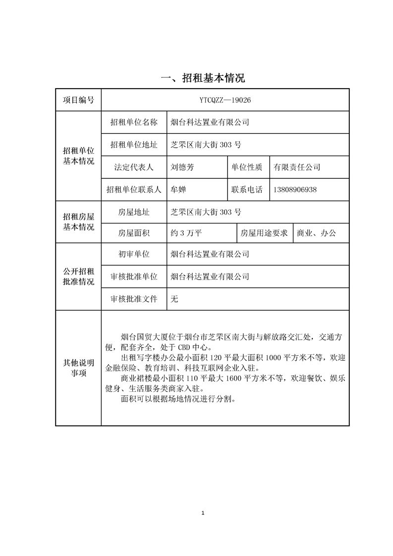 南大街303號(hào)國(guó)貿(mào)大廈招租項(xiàng)目