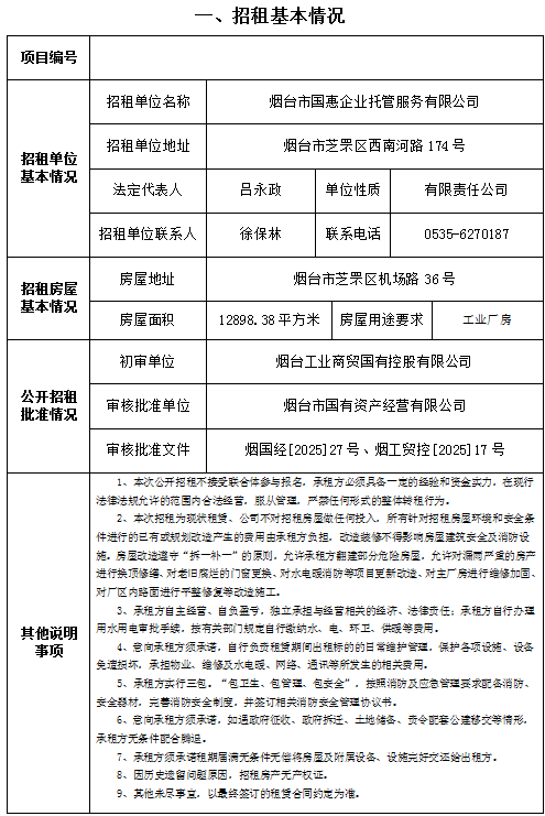 煙臺市芝罘區(qū)機場路223號房地產(chǎn)招租公告